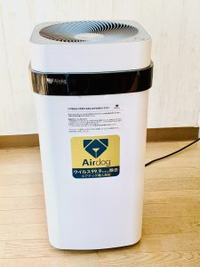 〇エアドッグ(空気清浄機)を保育室に設置しています。30分で42畳の空間のウイルスを、99.8%以上除去します。