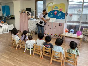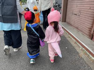 10月31日、みんなそれぞれ可愛い衣装に身を包み、お外を歩いてお菓子をもらいに行きました。